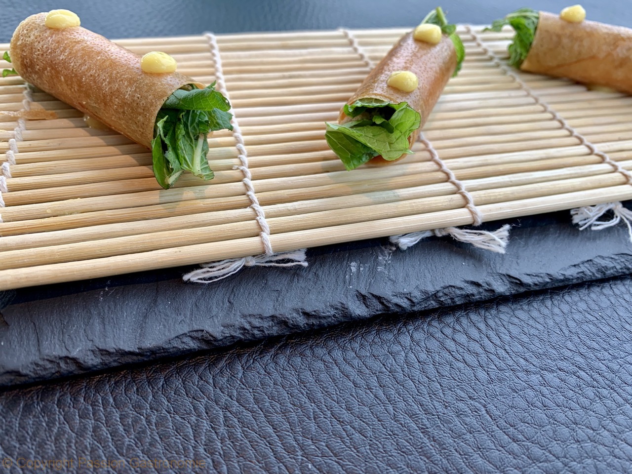 Suite des mises en bouche : foie gras de canard, anguille fumée, herbes fraiches @Restaurant La Villa In The Sky