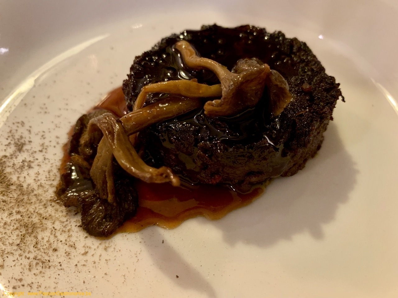 Mon boudin noir au foie gras, soigneusement mitonné à la maison, chanterelles, sauce au jus de travers, @Restaurant Le Fou est Belge