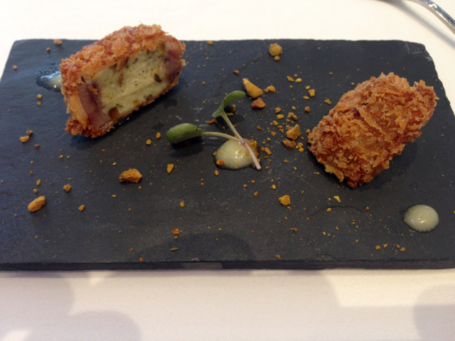 Jambonneau confit au foie gras, salade de lentille et anguille fumée @Restaurant Little Paris