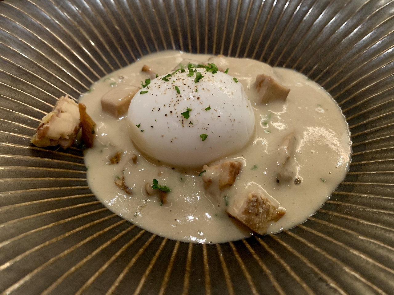 Soupe de Cèpes, oeuf mollet, foie gras, brioche toastée @La Table du Tribeca