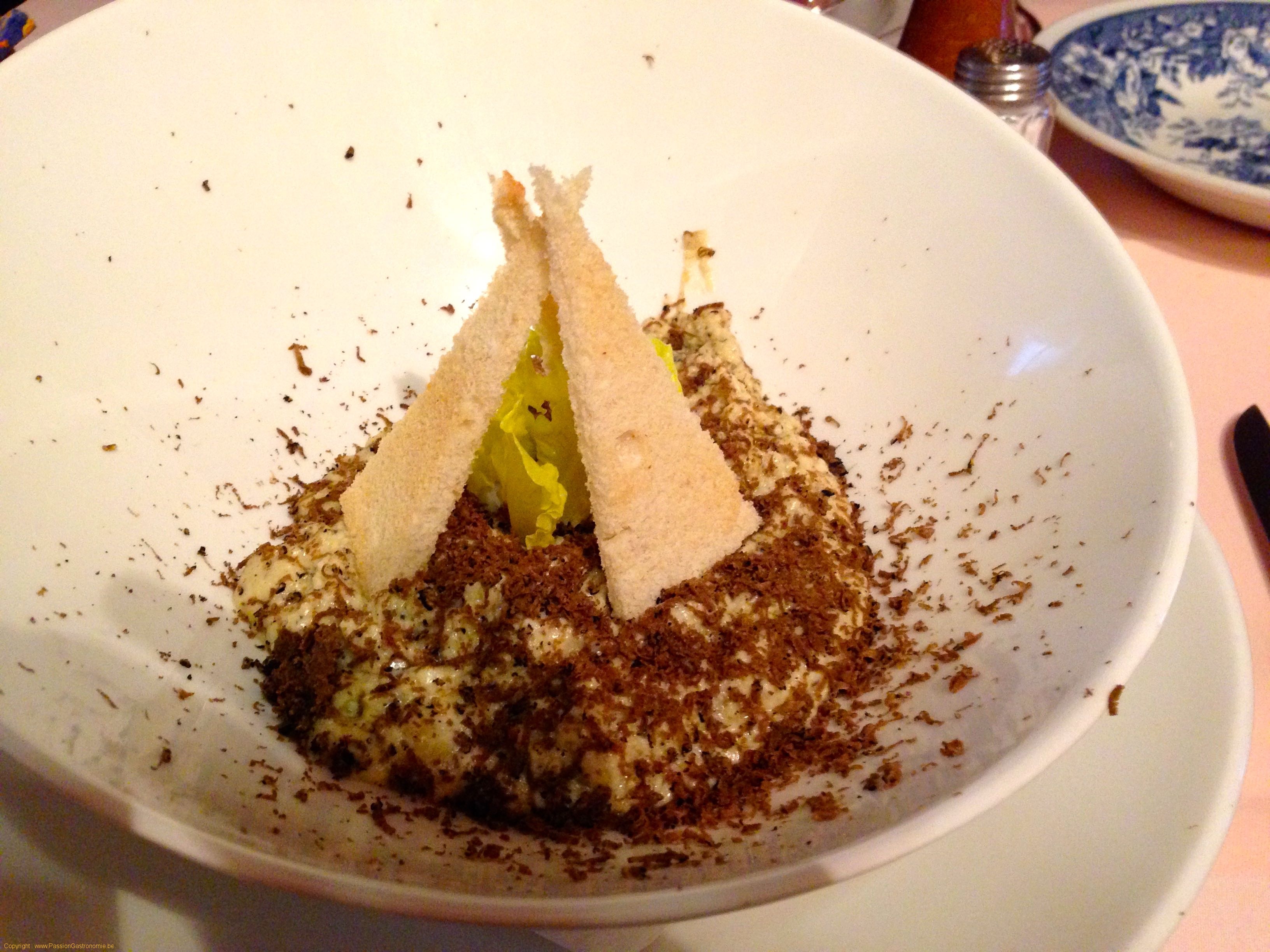 Œuf fermier cuit à 63°C, topinambour, scarole, lard de colonnata @ Chermanne