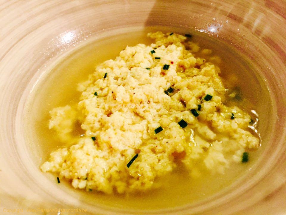 Mise en bouche : Stracciatella, bouillon de volaille, parmesan @Ugo