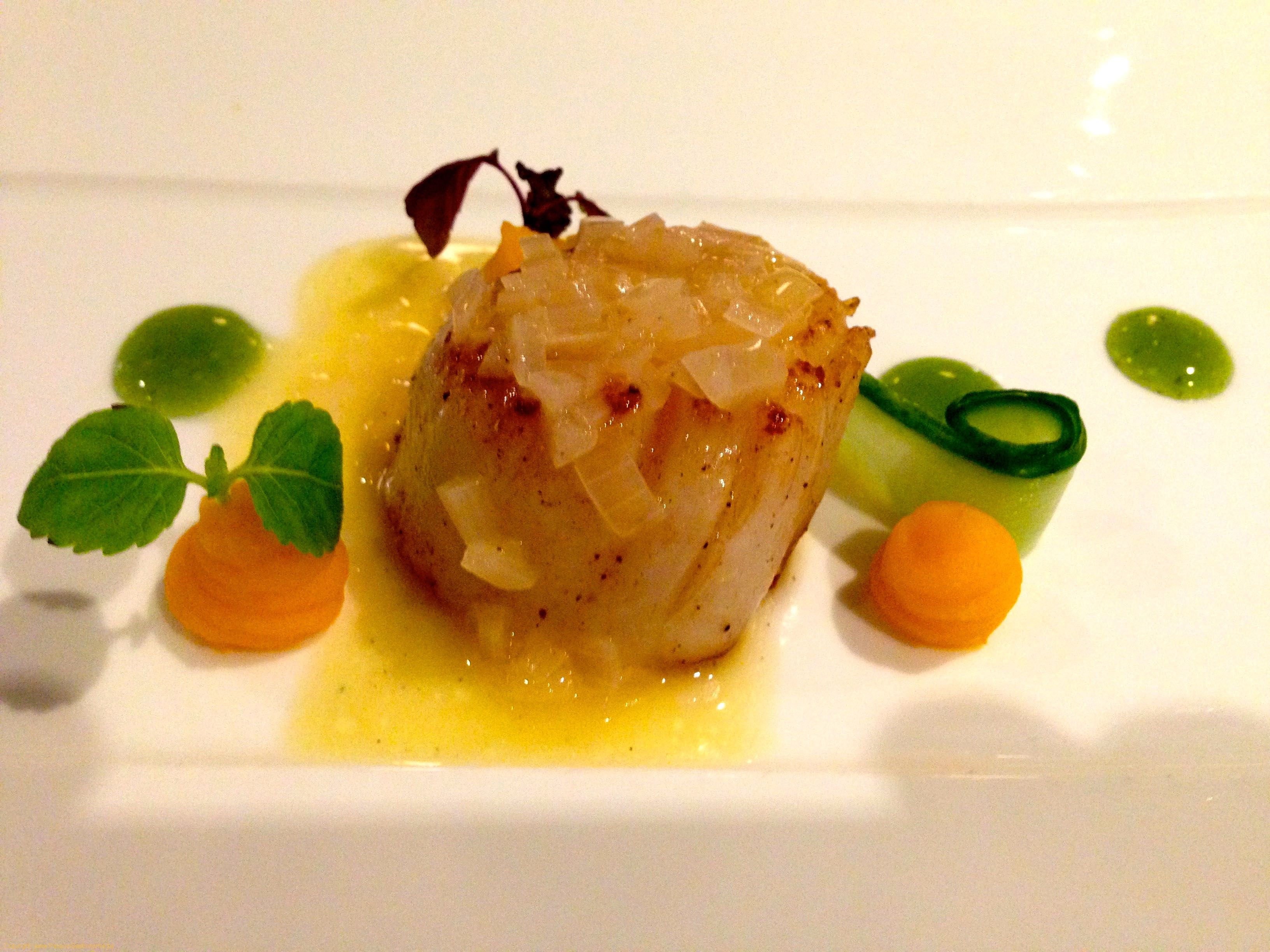 Entrée : Saint-Jacques de Dieppe, gel d’oseille, purée de courges Butternut, beurre blanc et échalotes @La Cuisine d'un Gourmand