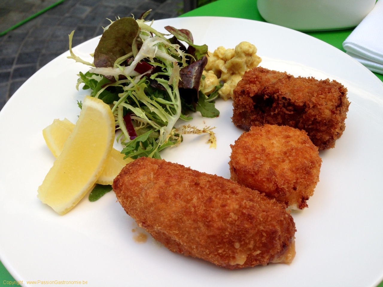 Trio de croquettes maison : fromage d’alpage, crevettes grises, pied de porc @Le Comptoir des Galeries