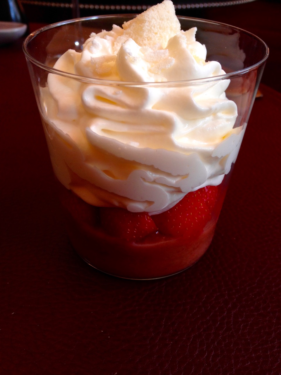 Fraise, rhubarbe, crème madame et consommé rhubarbe et samba et tuile au sésame @Au Gré Du Vent