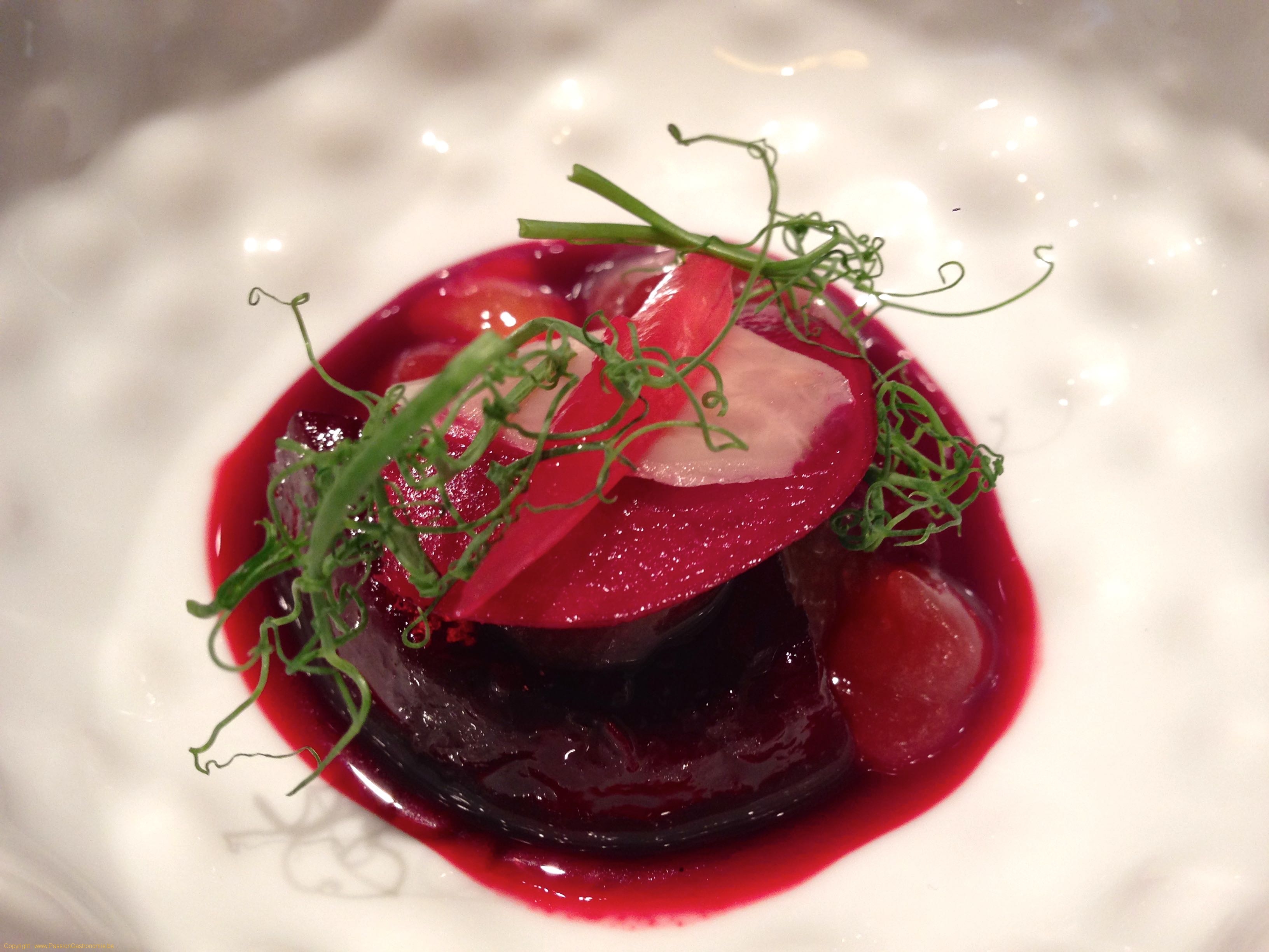 Mise en bouche : Betterave et rhubarbe @L'Eveil des Sens