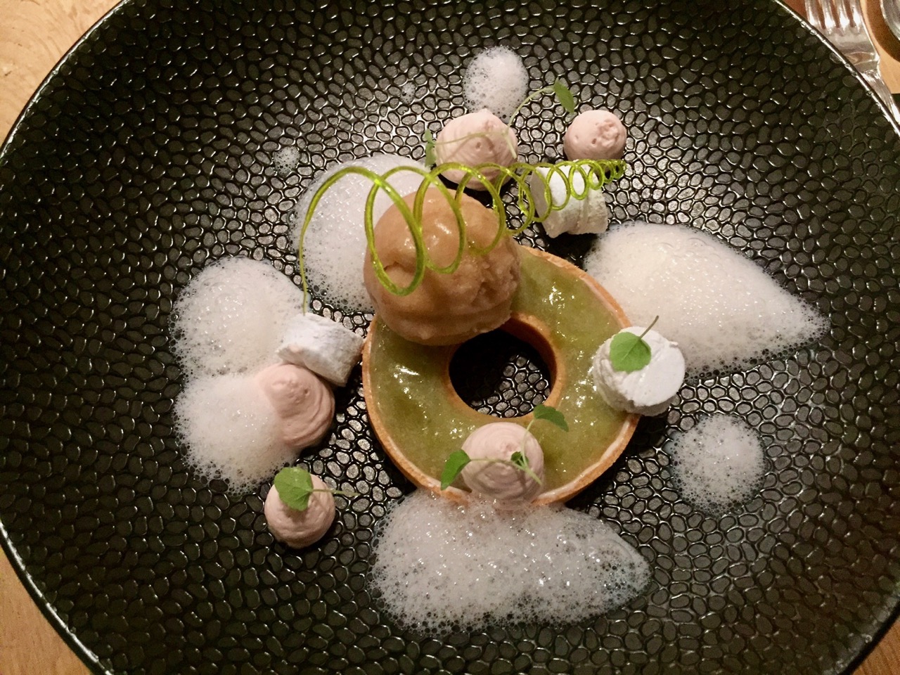 Rhubarbe, yaourt, menthe, noix de pécan @Restaurant L'Ardeqo