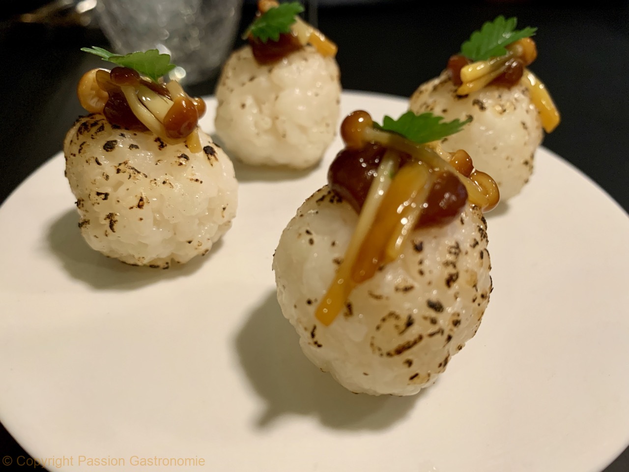 Boule de riz brulé, gel à base de gingembre, orange et réglisse@Restaurant Quai N°4
