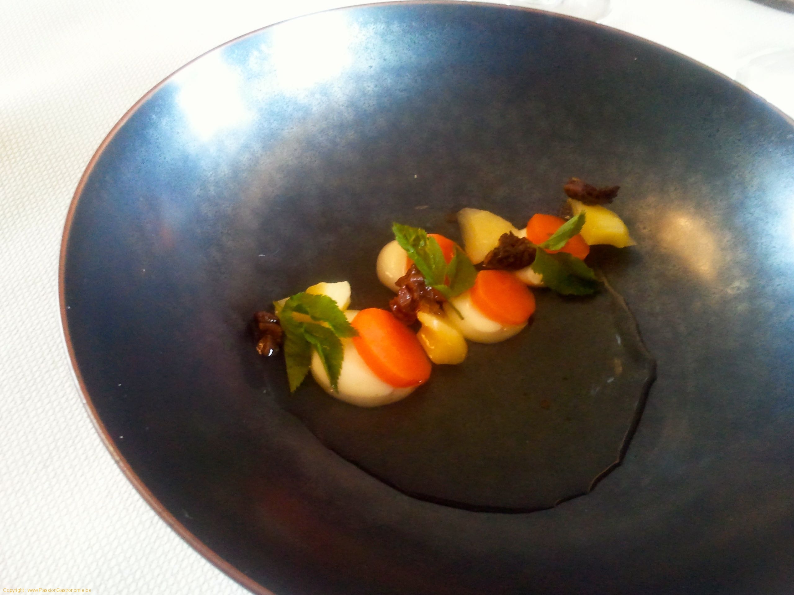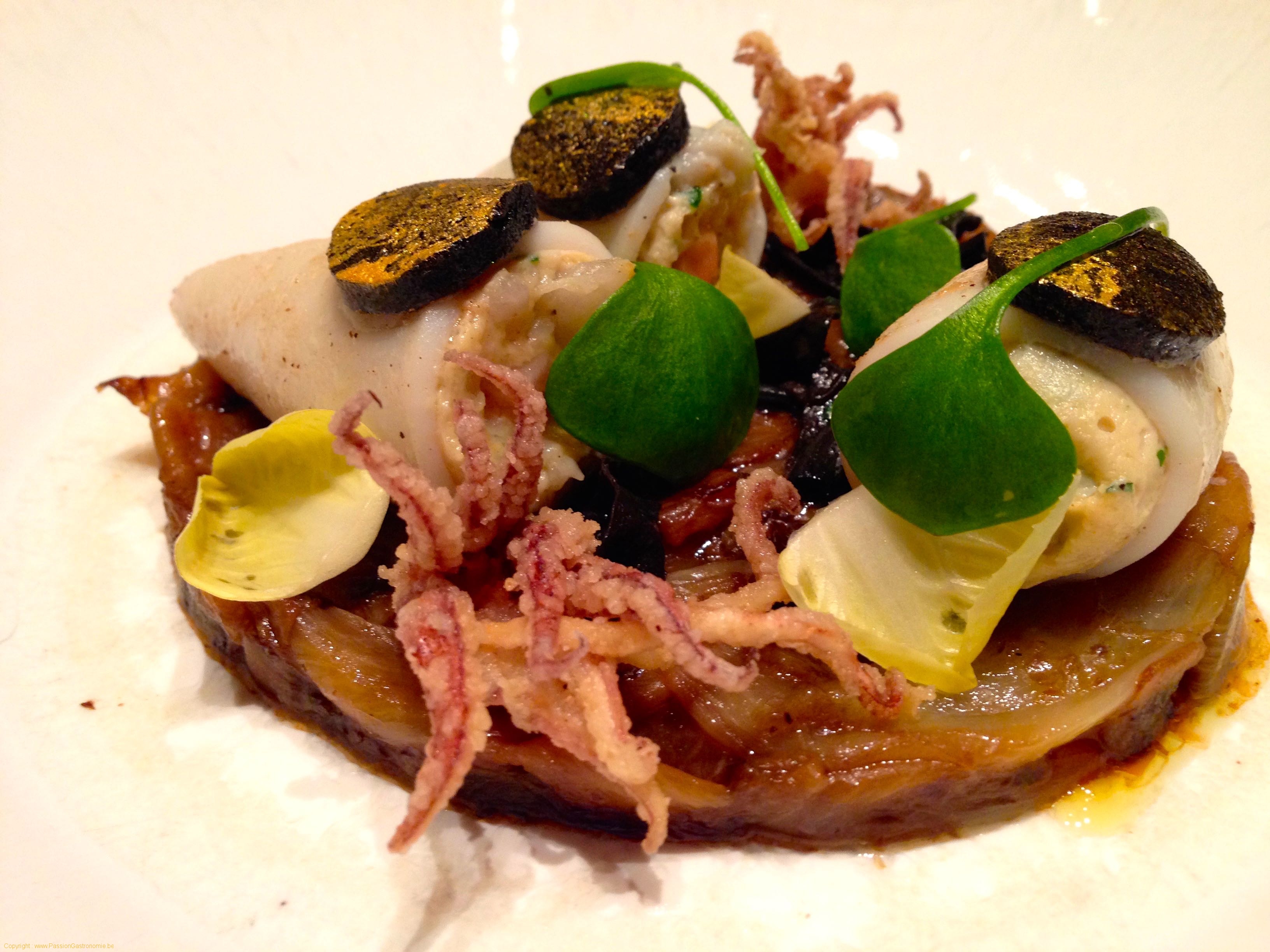 Entrée : Supions farcis, Chiconettes, Trompettes, Emulsion truffe, Porto et Sherry @Sea Grill