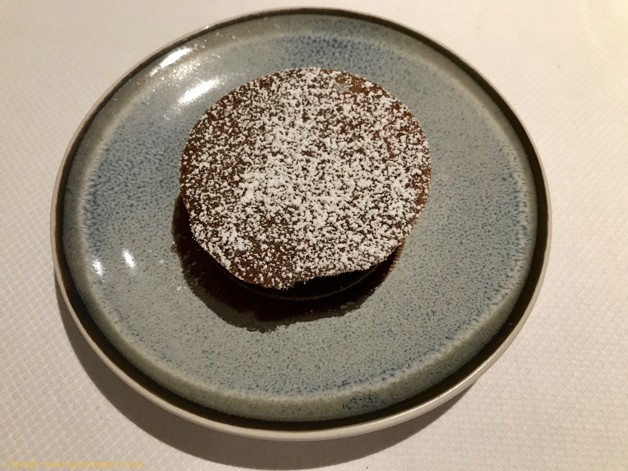 Septième mise en bouche : Sépia, sureau glacé, gelée à base d’escabèche. Le Sépia est une seiche géante qui a été légèrement cuite et qui est délicatement grillée. La gelée à base d’escabèche a été remodelée pour lui donner cette forme amusante déposée sur le bol et donnant l’impression de vouloir s’échapper de l’assiette. Très amusant et comme toujours, plein de saveurs et de plaisirs.