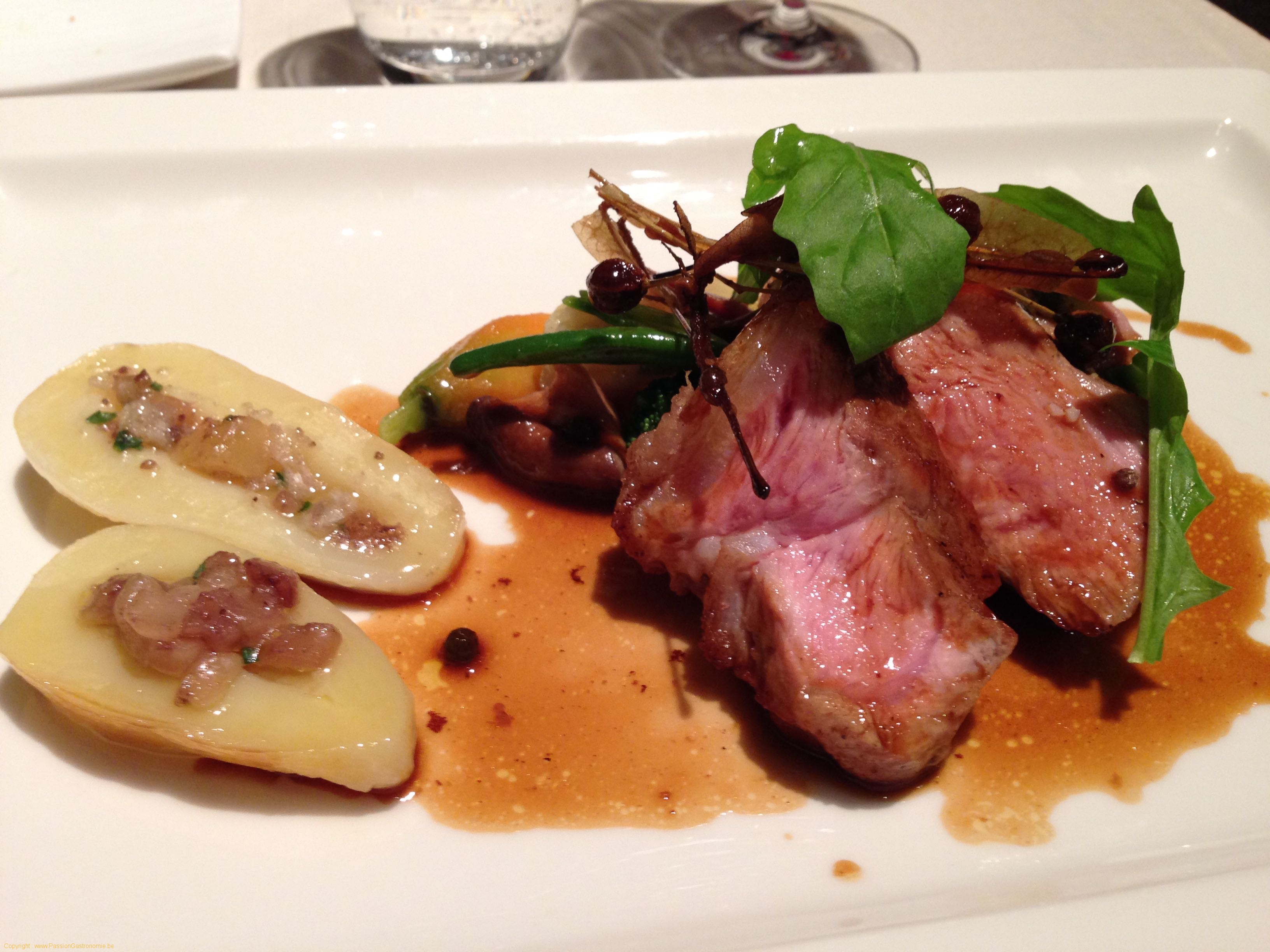 Côte de veau rôtie au Tilleul du jardin et poivre vert, pomme de terre gratinée à la moelle, légumes du marché @3P'tits Bouchons