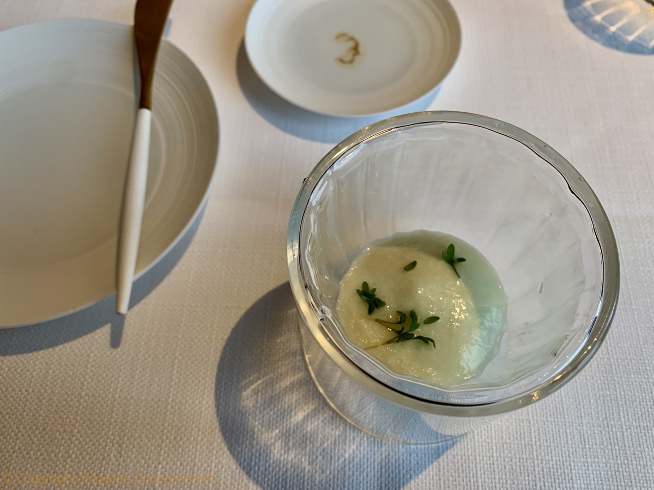 Mise en bouche : pageot, jus d'étrilles, chair de tourteau @Le Petit Nice